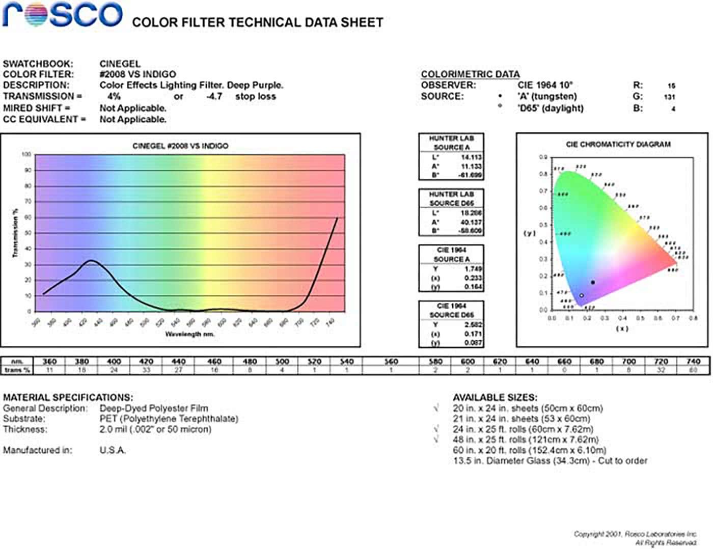 R2008 Rosco Cinegel Roscolux Storaro Indigo