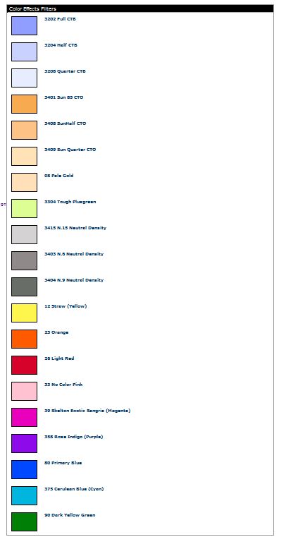 - CTB filters for creating cool-lit lighting effects.